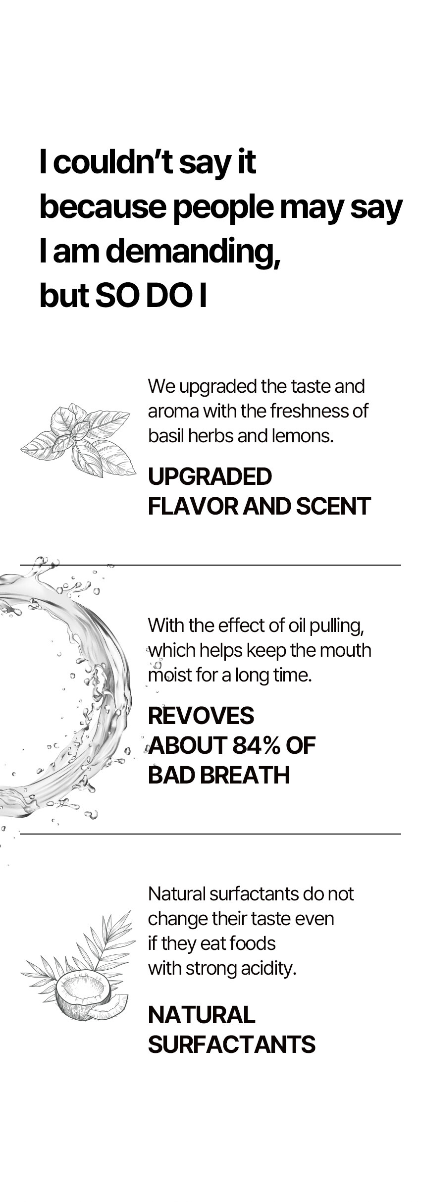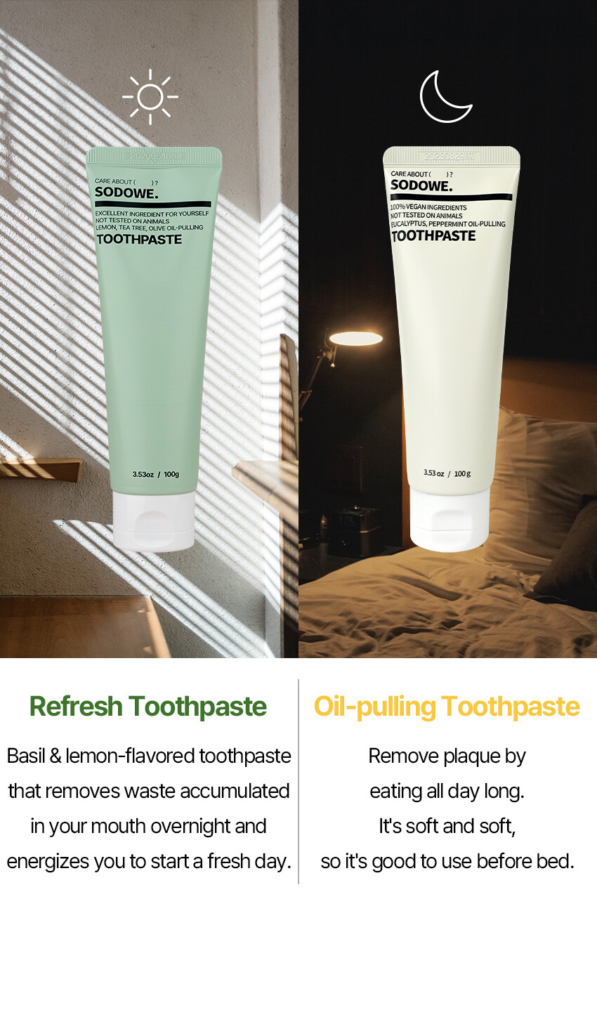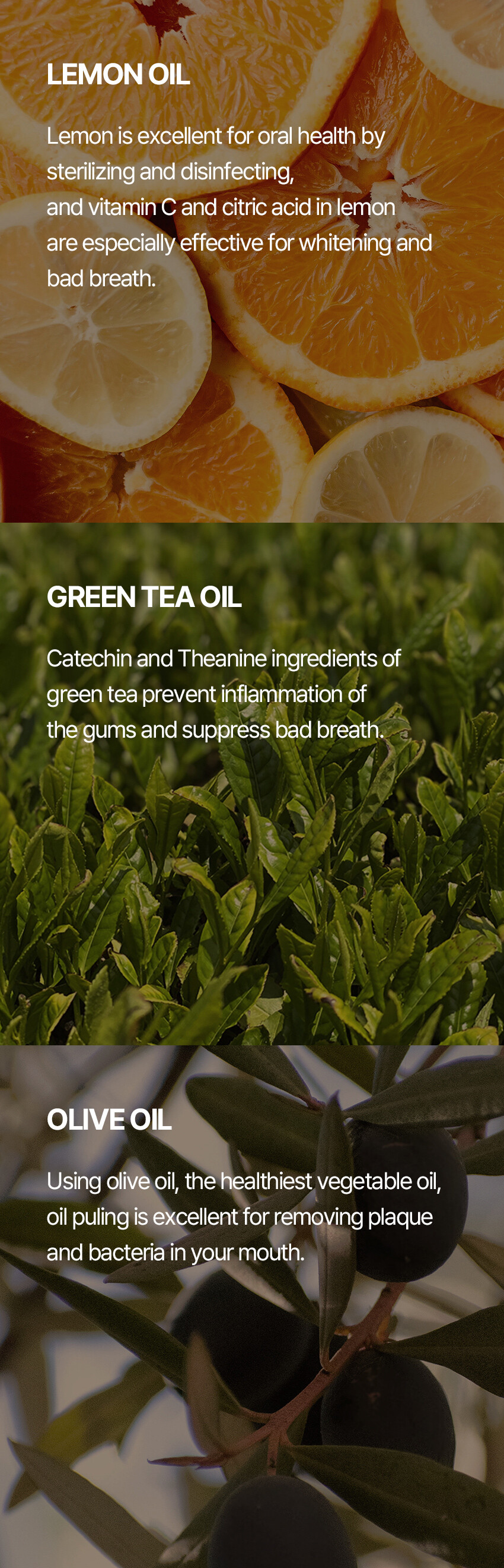 - Oilpulling: This toothpaste contains Eucalyptus and Peppermint with blending oil extracted from leaves, so you can easily feel the oilpulling effect.